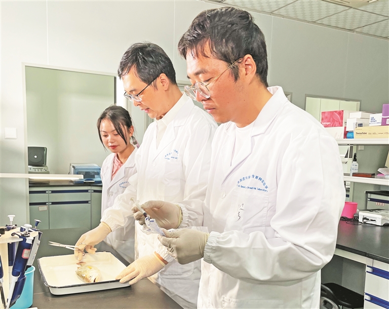 4月15日,在海水养殖生物育种全国重点实验室,技术人员忙着大黄鱼育种的“芯”技术攻关,力争养出“最优秀”的大黄鱼。