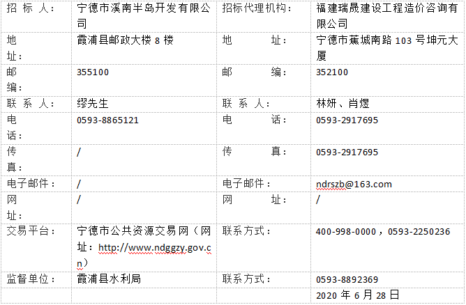 本招标项目福建省霞浦县田螺岗水库工程(项目名称)已由福建省水利厅(项目审批、核准或备案机关名称)以福建省水利厅关于霞浦县田螺岗水库可行性研究报告的审查意见(闽水审批[2020]63号)(批文名称及编号)批准建设,项目业主为宁德市溪南半岛开发有限公司,建设资金来自业主自筹(资金来源),出资比例为100%,招标人为宁德市溪南半岛开发有限公司,招标代理单位为福建瑞晟建设工程造价咨询有限公司。项目已具备招标条件,现对本项目的勘察设计(勘察或设计或勘察设计)进行公开招标。