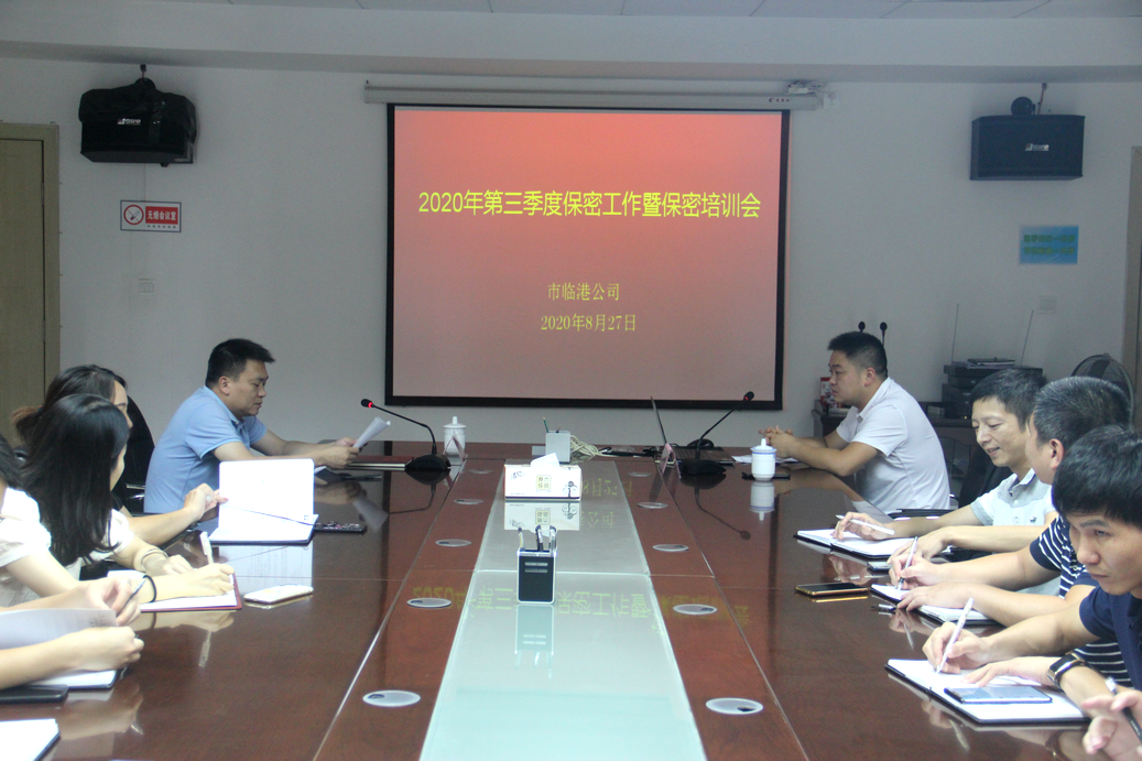 为切实加强公司保密工作,规范保密工作行为,8月27日下午,市临港公司召开第三季度保密工作暨保密培训会,公司全体员工参加会议,会议由钟奶祥总经理主持。