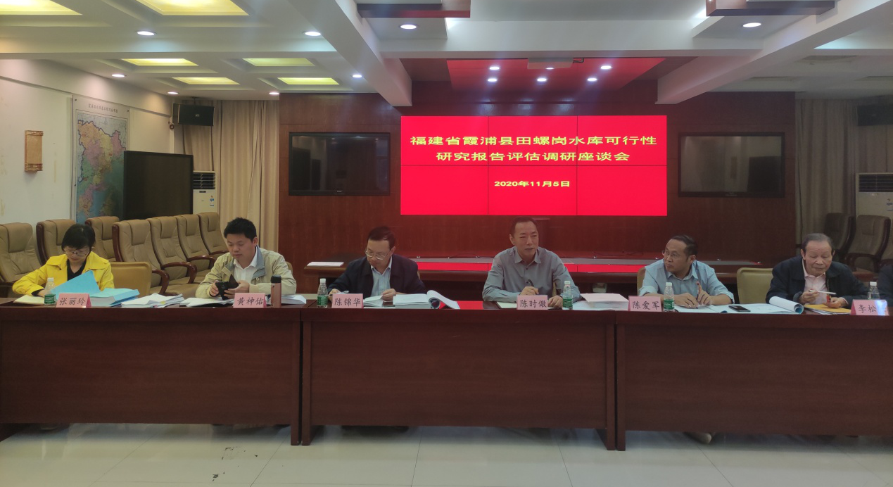 现场调研后,根据项目组一行安排,在霞浦县水利局七楼会议室组织了座谈会。省政府投资项目评审中心项目组、专家组、县政府、县发改局、县水利局、县自然资源局、县生态环境局、县水利水电移民发展中心、崇儒乡、盐田乡、宁德市溪南半岛开发有限公司、福建省水利水电勘测设计研究院等相关单位参加了这次座谈会。