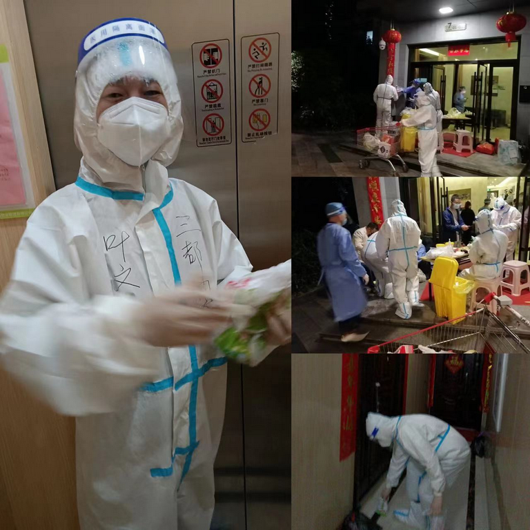 在得知封控小区夜间保障队伍力量不足情况下,主动请缨提供志愿服务。4月13日晚上7点至凌晨在国宝一号封控区外围,为居民运送物资(日常生活用品、药品)、协助转运隔离人员。他说,“虽然穿着防护服工作,体力消耗很大,但这都是小事,能为居民运送生活物资,保障居民基本生活,为疫情早日消散尽自己的一份力,身为一名共产党员,我义无反顾。”