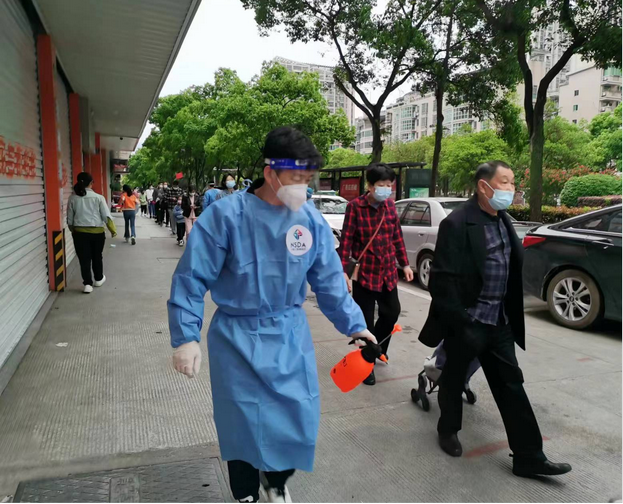 4月16日至18日早晨五点半,天刚蒙蒙亮,下宅园小区里已有了他忙碌的身影。协助社区开展核酸检测、维持现场秩序、提醒居民保持一米安全距离;挨家挨户进行防疫知识宣传、通知居民进行核酸检测,没有电梯就一层楼梯一层楼梯往上爬,确保宣传到位,做到全民核酸;不定时进行现场消杀......时刻按照防疫工作要求开展。