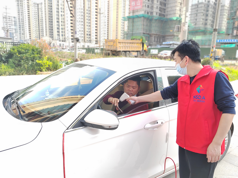 (叶文辉在帮司机测体温)