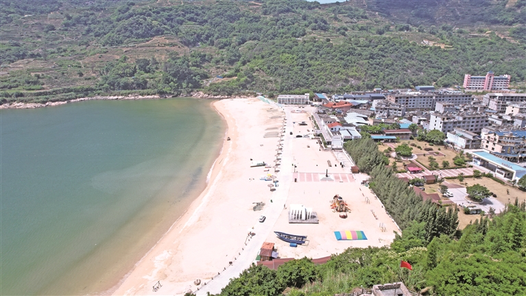 在与王谷村相隔不远的小白鹭村,近处沙滩上,三三两两的游客正悠闲漫步、踏浪戏水;远处的“蓝色粮仓”里,养殖渔船则穿梭往来、播种希望,目之所及构成了一幅生机无限的滨海风光画卷。