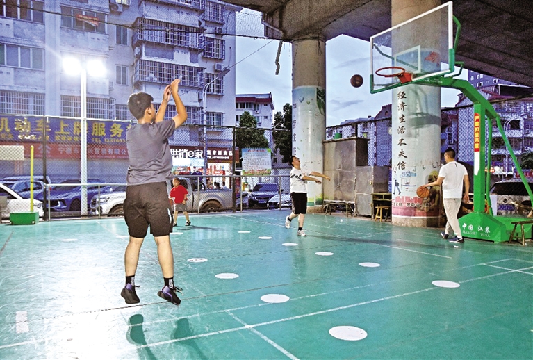 桥上车辆川流不息,桥下球赛如火如荼……每当夜幕降临,宁德天湖西路的“桥下运动场”就变得热闹非凡,篮球、乒乓球、广场舞等各项运动在这里同时进行,人们挥汗如雨,充分释放着多巴胺,享受着城市空间“巧用”带来的幸福。