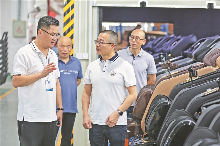 职能部门负责人带队到按摩器企业调研大健康产业发展情况。李郁 摄