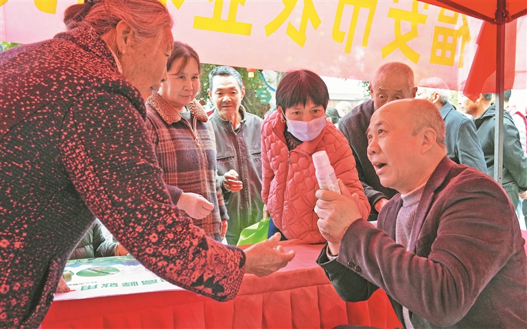 农技人员走进乡村为农民群众讲解化肥农药使用知识 吴庆堂 摄