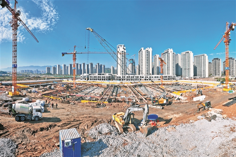 近日,在蕉城中学东校区项目建设现场,只见塔吊耸立,挖机来回穿梭,土方开挖、桩基铺设……整个施工现场繁忙而有序。