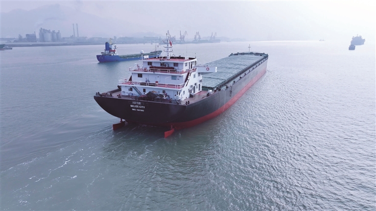 近日,由福安马头造船厂修缮的内贸转出口船舶“华禹69”轮,在宁德港赛江港区完成边防检查手续后,开航奔赴印度尼西亚,成为宁德港今年首艘出口“一带一路”共建国家的“宁德造”船舶。