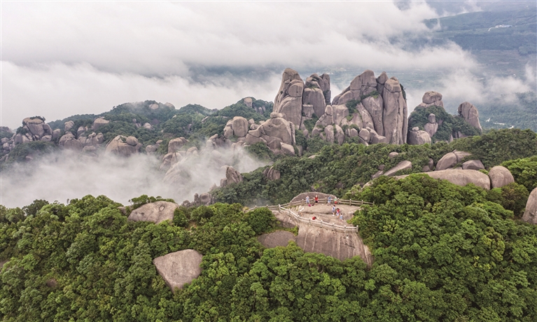作为人气旅游胜地,太姥山有着“峰险、石奇、洞幽、雾幻”四绝。登山而行,一路风景描述了山川湖海的温柔,在这没有天花板的地方,大口吸氧,感受自由的风,十分惬意。