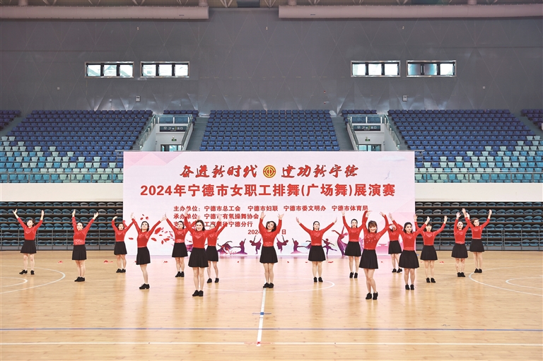 3月7日,由市总工会、市妇联、市委文明办、市体育局联合主办,市有氧操舞协会承办的“奋进新时代∙建功新宁德”2024年宁德市女职工排舞展演赛在市体育中心举行。市领导陈梅、陈美莺、钟梅允出席活动。